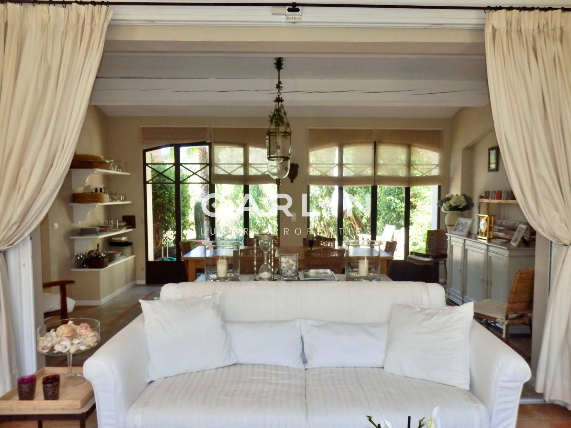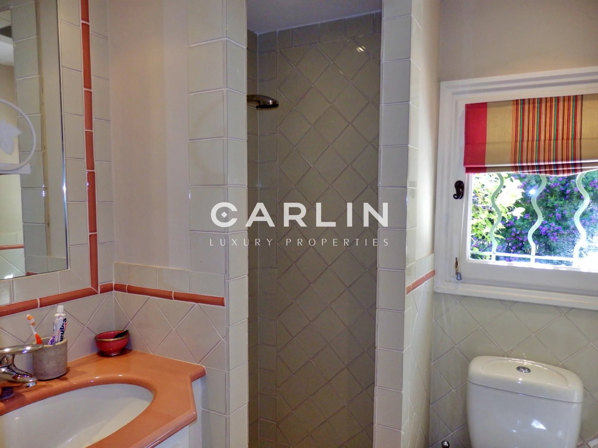 La plage de Pampelonne et le Club 55 à pied pour cette belle villa provençale, édifiée sur un terrain d’environ 1600 m² complanté d’essences méditerranéennes et offrant une agréable vue dégagée sur les collines.