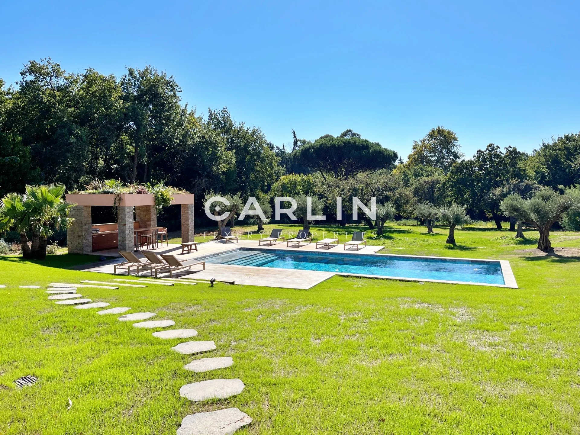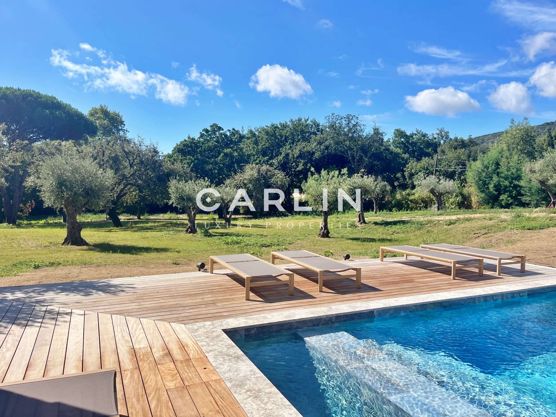 De belles terrasses bordent la maison et le terrain de 6800m2 environ permet de profiter en toute intimité de la spacieuse piscine et du pool-house.