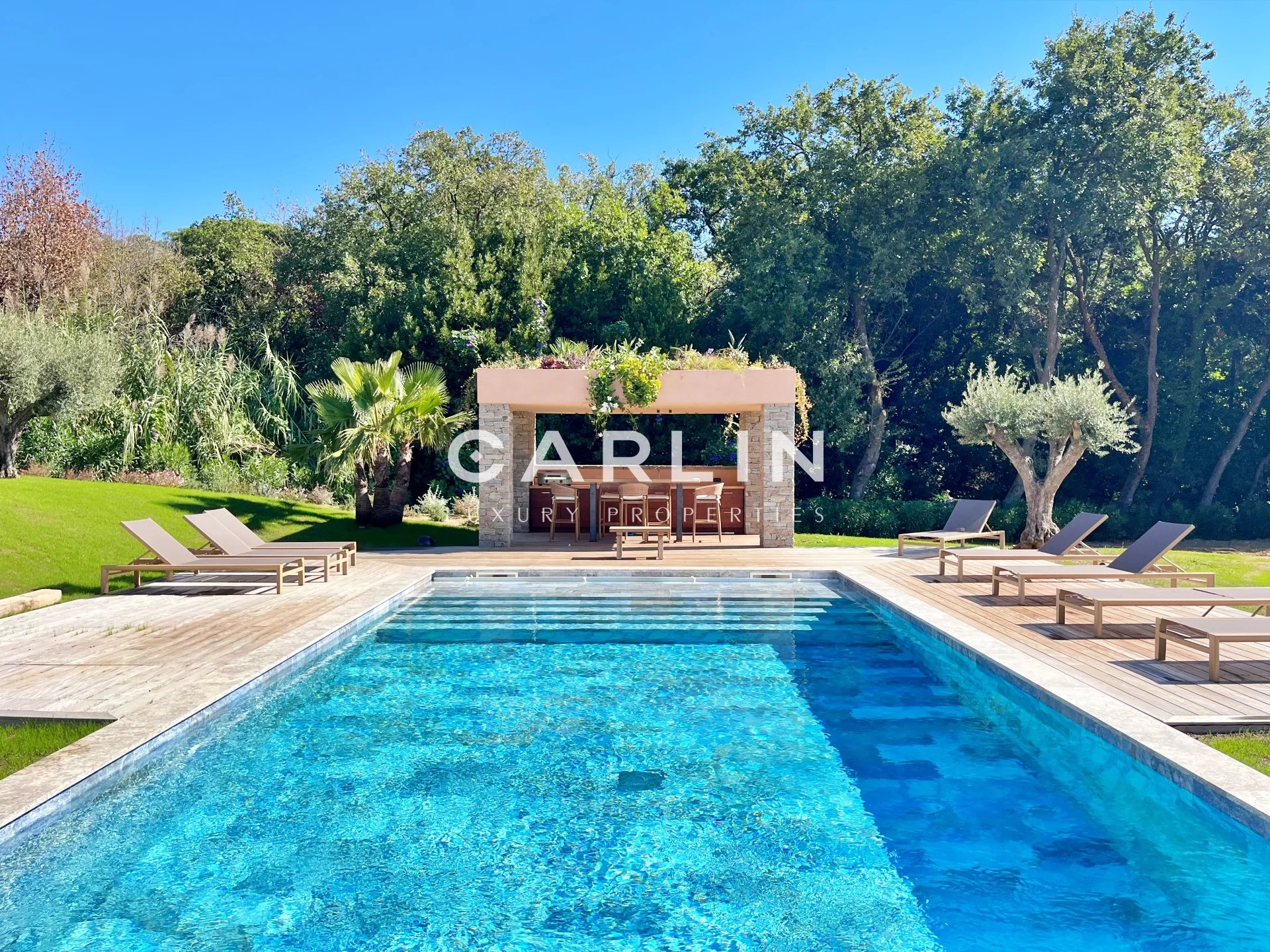 De belles terrasses bordent la maison et le terrain de 6800m2 environ permet de profiter en toute intimité de la spacieuse piscine et du pool-house.
