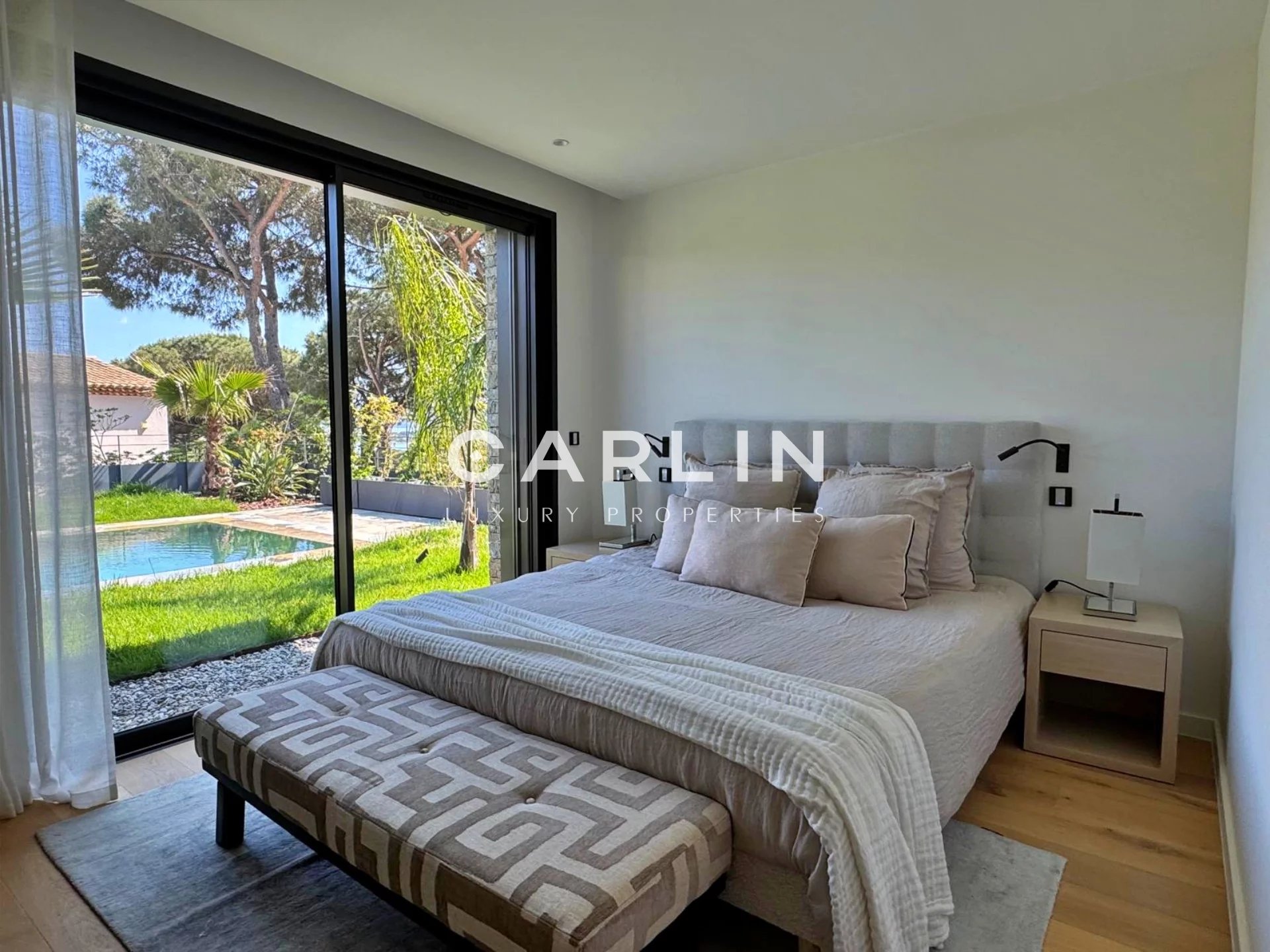 Le rez-de-jardin accueille trois suites aux prestations soignées, chacune dotée de sa salle de bains privative et s’ouvrant harmonieusement sur les extérieurs. Ces chambres bénéficient d’un accès direct à l’espace piscine, véritable cœur de la villa.