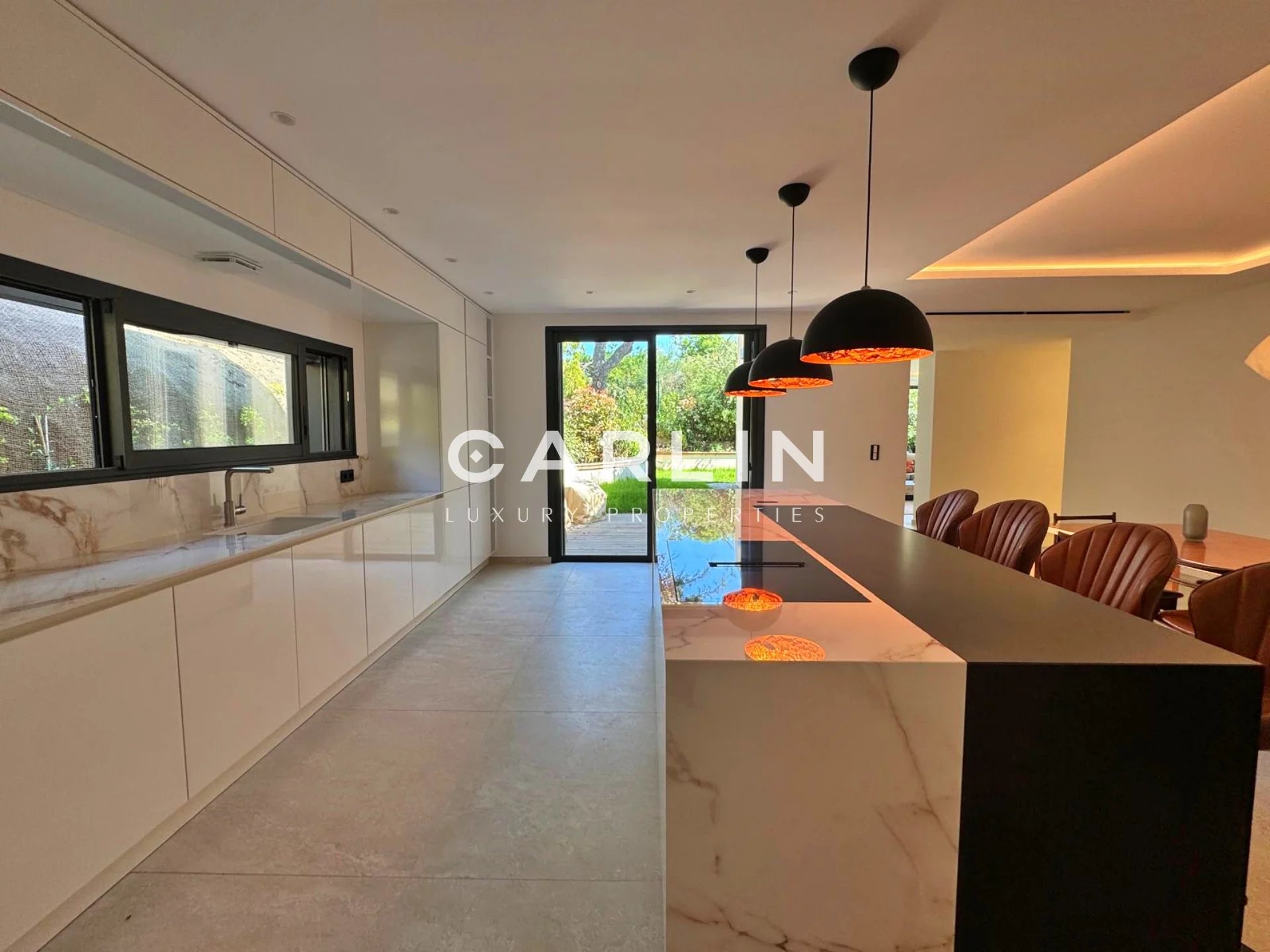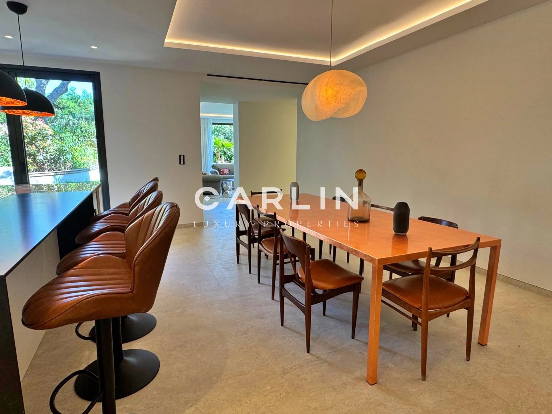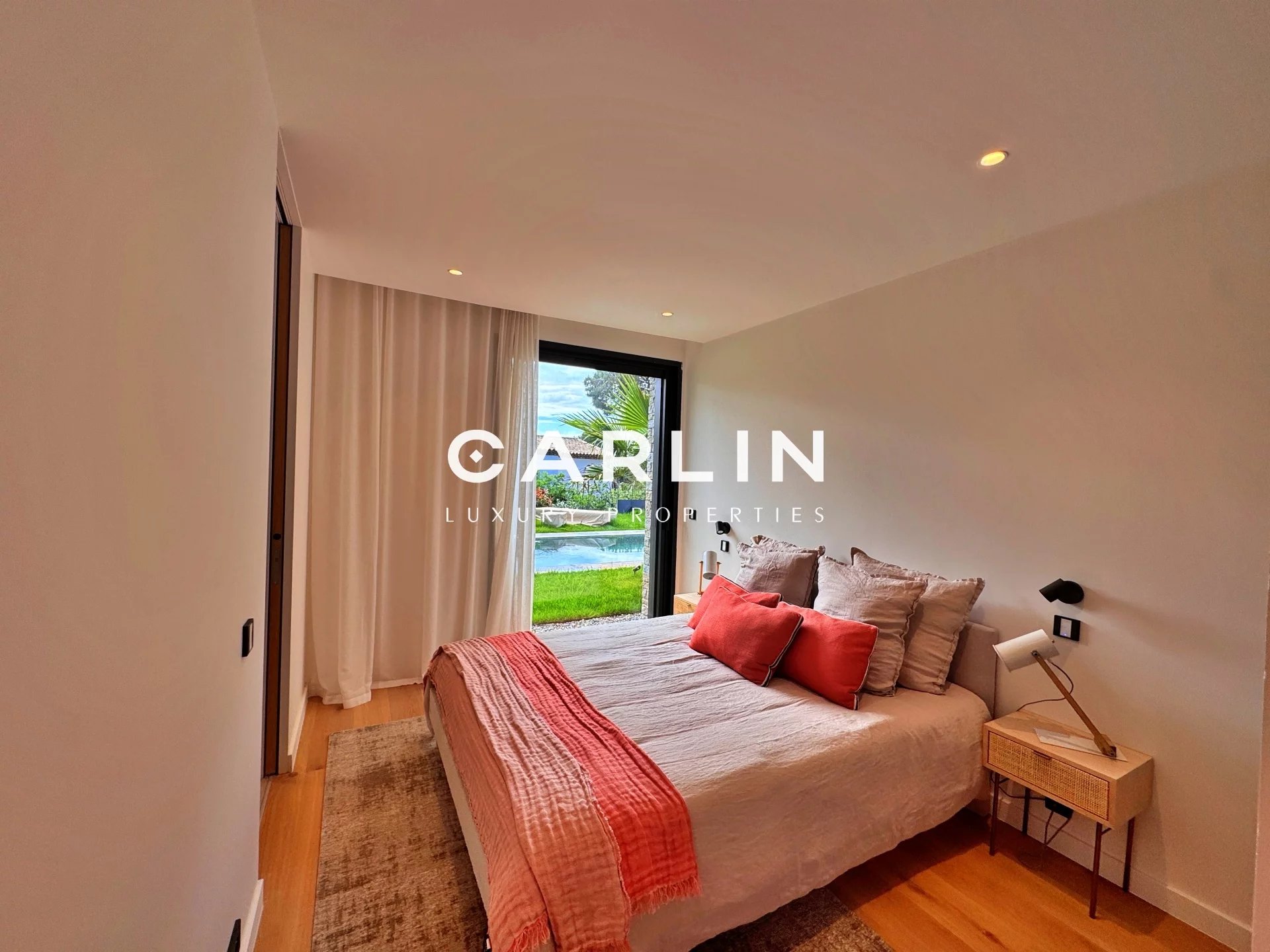 L’extérieur est une invitation permanente au bien-être : le jardin paysager, méticuleusement aménagé avec des essences méditerranéennes, entoure une sublime piscine à effet miroir, dont les reflets changeants épousent le ciel azuré.