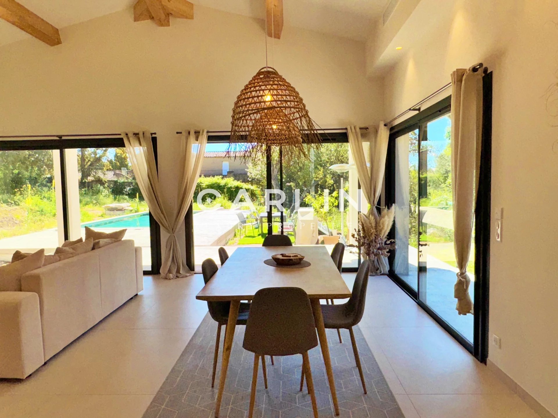 Nichée dans un environnement calme et privilégié, à pied de la plage, des restaurants et du prestigieux golf de Beauvallon, cette superbe villa neuve contemporaine de 265 m2, édifiée sur un terrain de 1560 m² avec piscine et garage, incarne le confort et l’art de vivre méditerranéen.