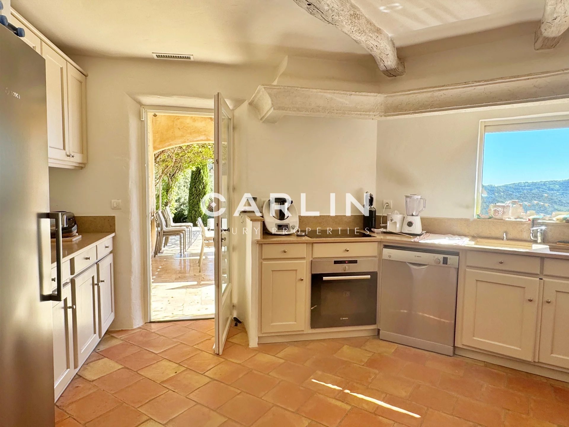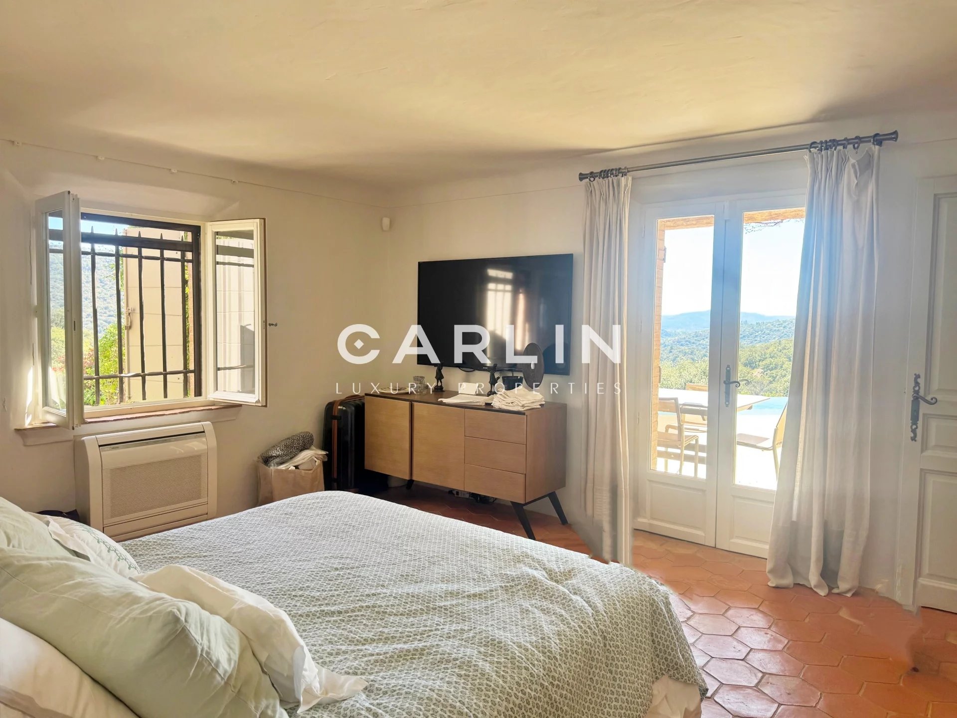 Offrant une vue dégagée sur les collines environnantes, entièrement climatisée, elle développe environ 180 m² sur un vaste terrain de 2,5 hectares.