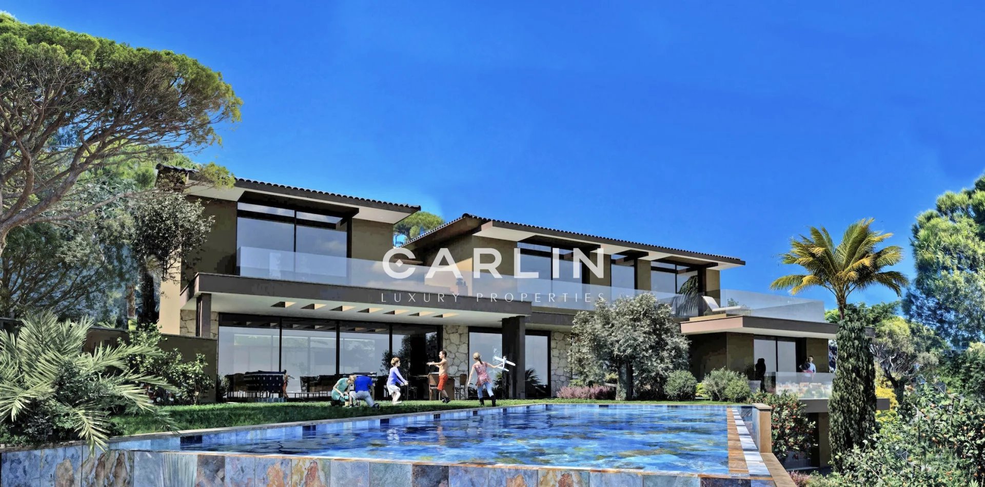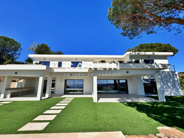 Située en position dominante au cœur d’un domaine privé et sécurisé, cette somptueuse villa contemporaine d’environ 380 m² habitables offre une vue panoramique imprenable sur la mer, tout en étant à quelques pas du centre-ville.