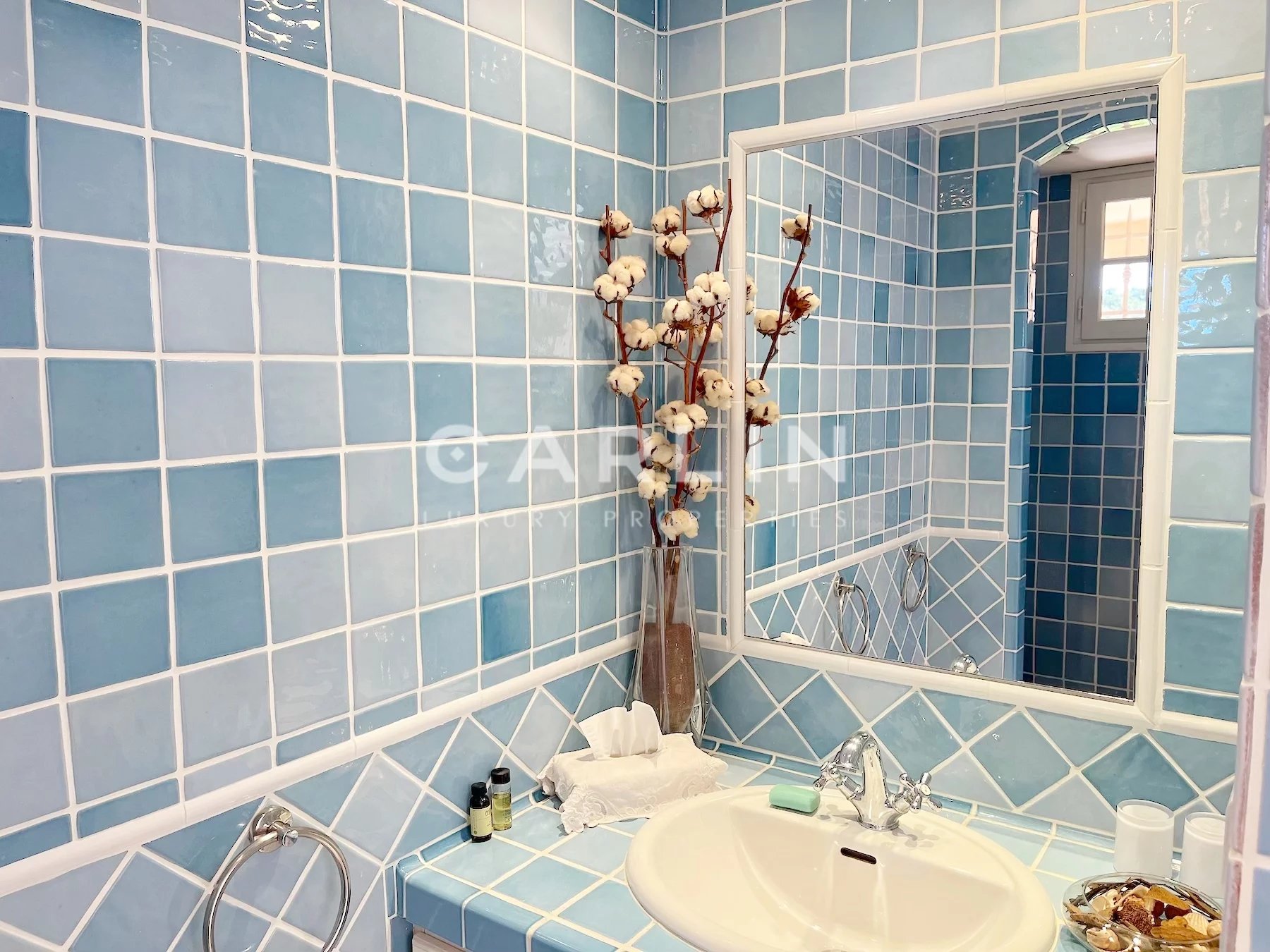 À l’étage, le charme opère de nouveau avec un très beau salon entièrement vitré donnant sur la mer, 3 chambres avec chacune leur salle de bain/douche/wc dont une chambre parentale avec un grand dressing et une terrasse toujours vue mer.